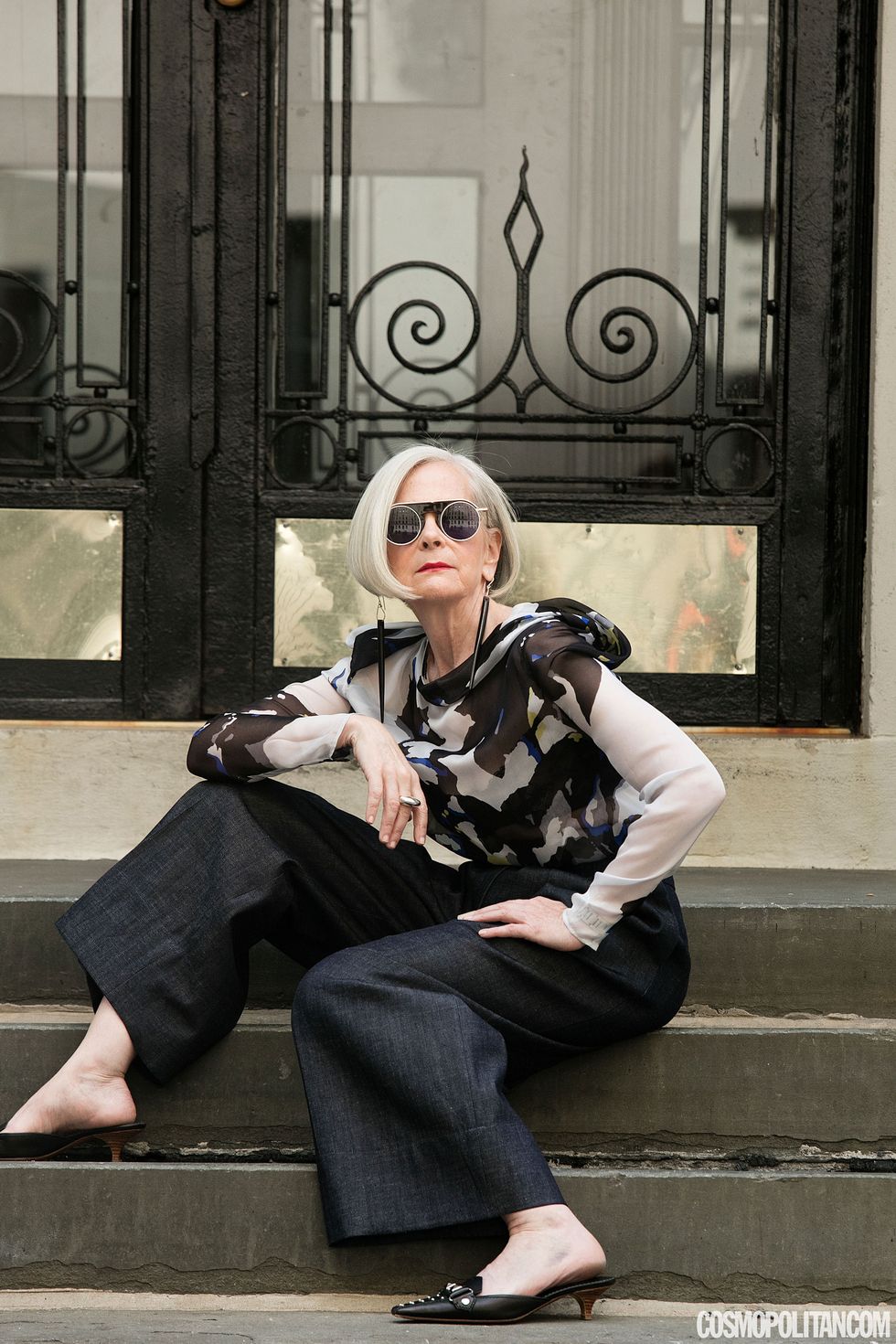 © Cosmopolitan - Ruben ChamorroLyne Slater a un parcours atypique. Son succès et sa renommée sont purement accidentels, et c’est elle même qui le dit ! La fashionista et influenceuse de 69 ans n’a pas toujours évolué dans le milieu de la mode. Professeur à l’université de Fordham dans l’état de New York, cette américaine a vu sa vie changer du jour au lendemain. En 2014, lors de la Fashion Week de New York, Lyne Slater a été photographiée par une horde de photographes à la sortie d’un défilé. Ultra lookée et stylée avec un costume signé Yohji Yamamoto accessoirisé d’un sac Chanel, Lyne Slater âgée de 60 ans à l’époque ne pouvait pas passer inaperçue. Les photos ont fait le tour de la Toile et ont propulsé ce professeur de faculté sur le devant de la scène. Dans la foulée, Lyne Slater a créé son blog Accidental Icon, ouvert une page Instagram qui comptabilise plus de 700 000 followers et signé de nombreuses collaborations. Désormais influenceuse connue et reconnue, Lyne Slater tient à diffuser sur ses réseaux des messages positifs et d’acceptation de soi à l’adresse de tous ! Elle déclarait d'ailleurs à ce propos : “Je pense que si tu es à l'aise avec ce que tu portes, peu importe l'âge que tu as, si tu l'assumes, tu seras très bien". On l’admire pour son look original, sa coupe de cheveux courte et grisonnante qui lui sied à merveille ainsi que son militantisme dont elle fait part sur ses réseaux sociaux.
